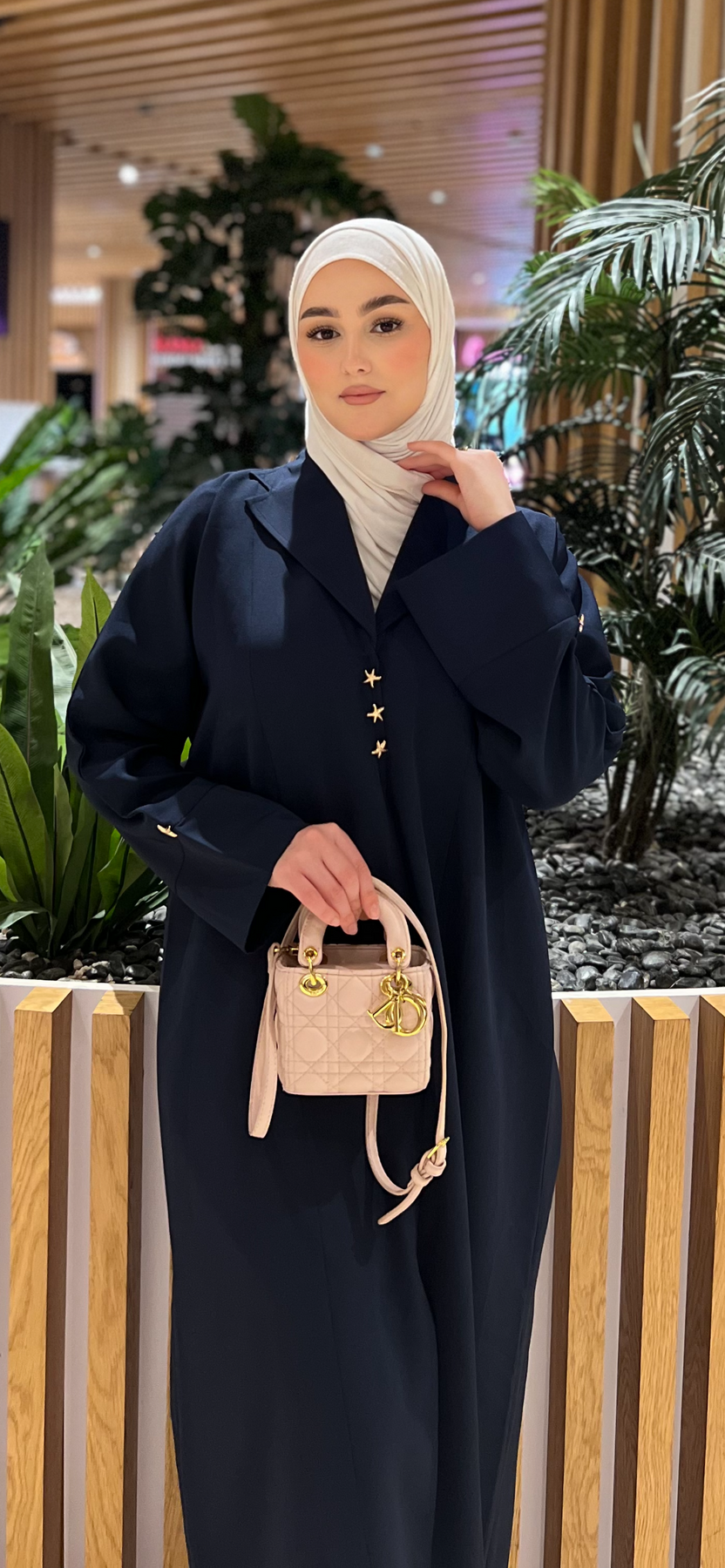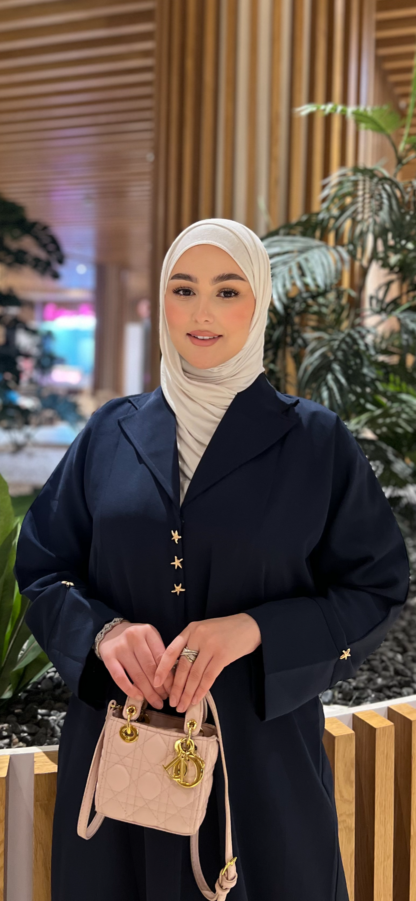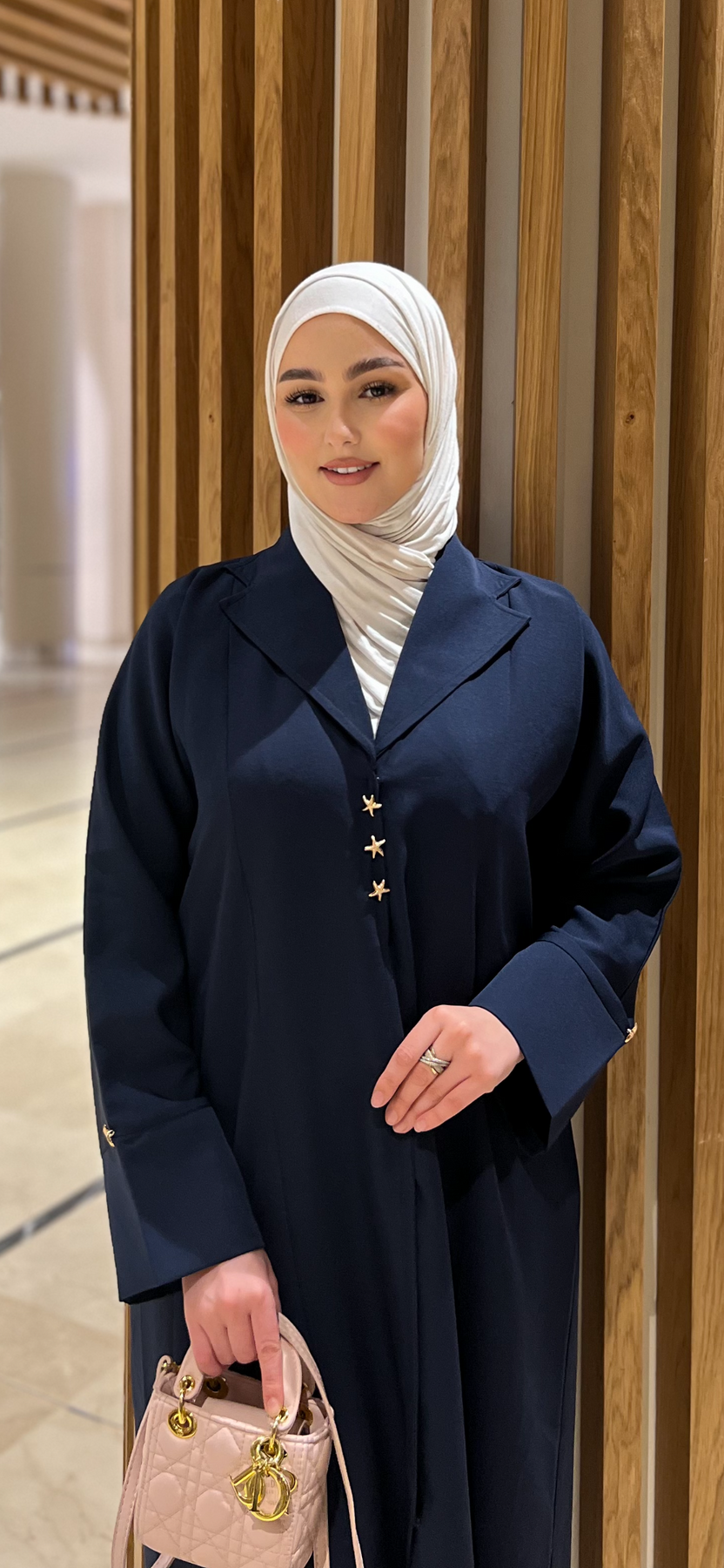 عباية بقصة البليزر مع اكسيسوارات في العنق و اليدين يعطي العباية انطباع الاناقة الفاتنة