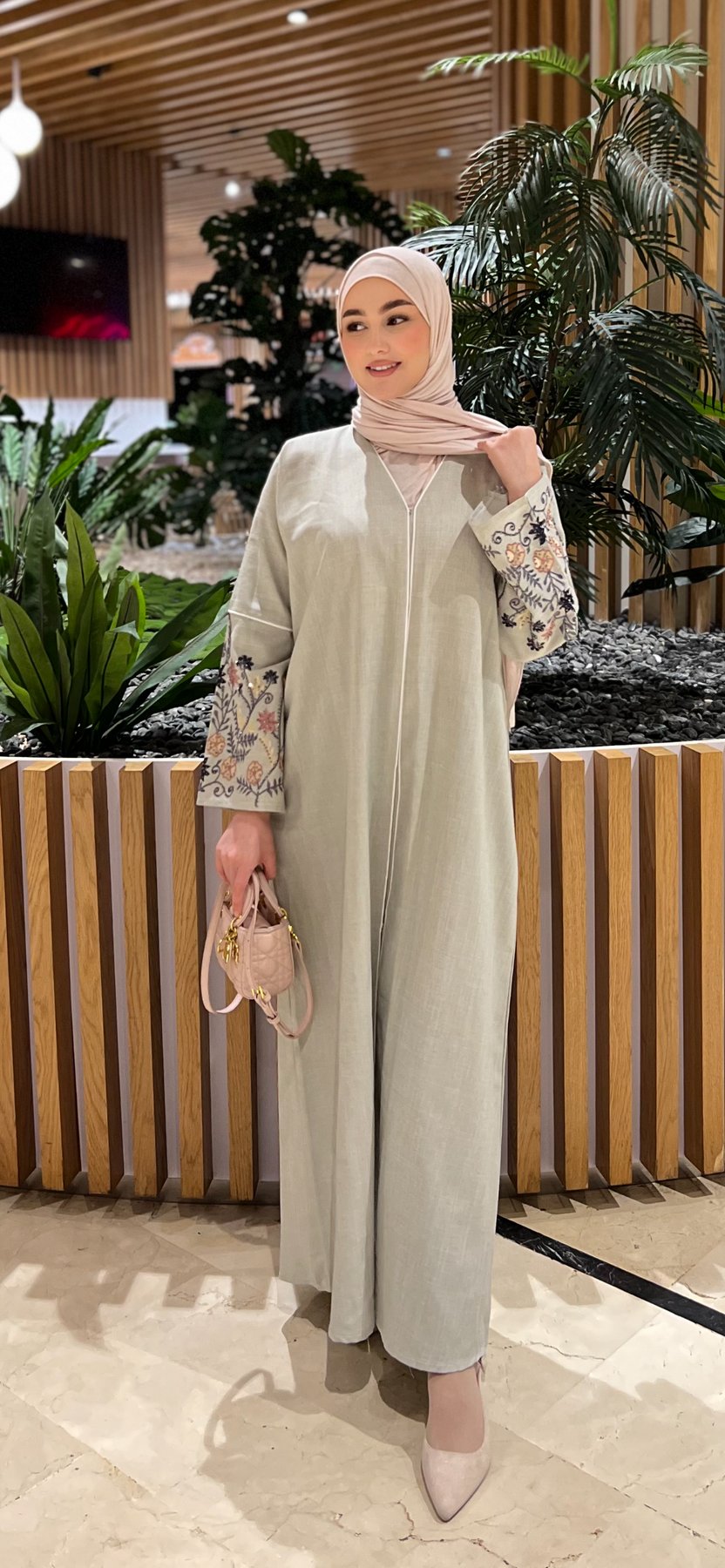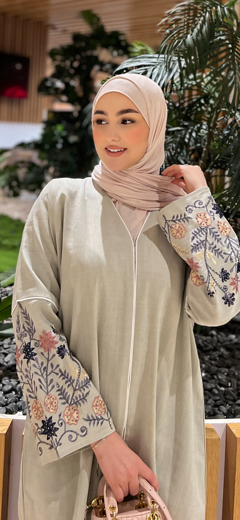 عباية جذايل قماش كتان مع فصوص و شك في اليدين